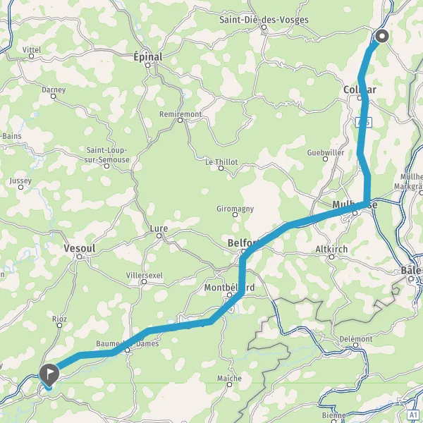 Sortir et rejoindre N57 (Rue de Vesoul). Continuer sur 350 mètres