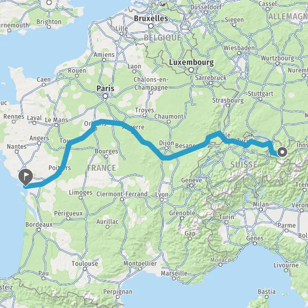 Prendre à gauche et rejoindre A36 E54 E60. Continuer sur 228 kilomètres