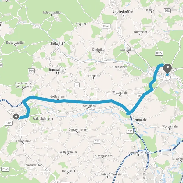 Tourner à gauche sur D421 (Rue de Dettwiller) et continuer sur 1 kilomètre