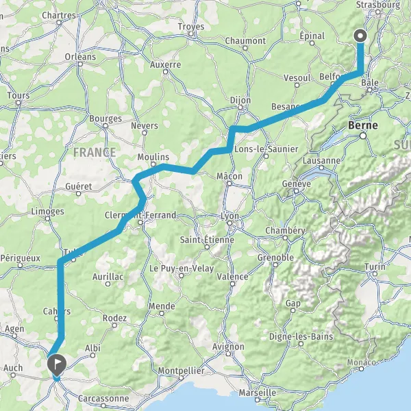Prendre à gauche et rejoindre A36. Continuer sur 228 kilomètres