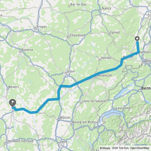 Prendre à gauche et rejoindre A36. Continuer sur 160 kilomètres