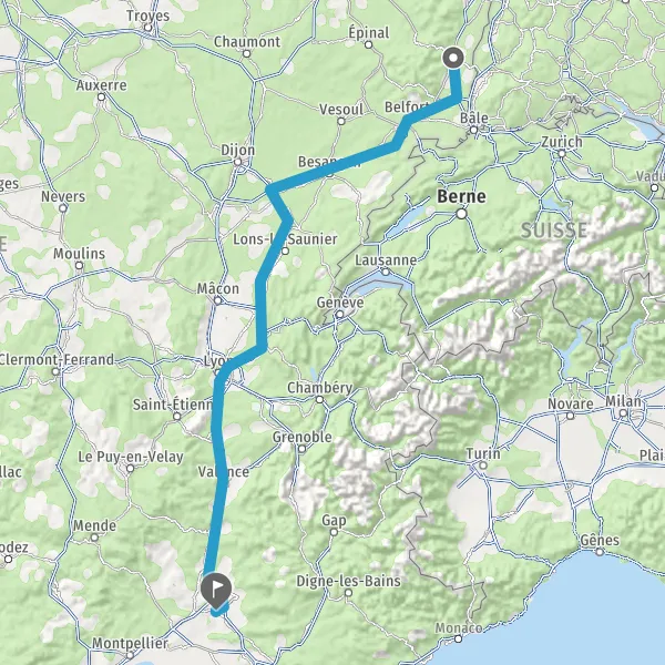 Prendre à gauche et rejoindre A36. Continuer sur 186 kilomètres