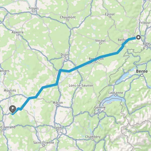 Prendre à droite et rejoindre A36 E54 E60. Continuer sur 222 kilomètres