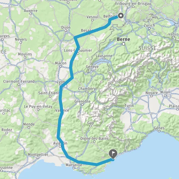 Prendre à droite et rejoindre A36 E54 E60. Continuer sur 180 kilomètres