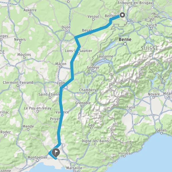 Prendre à droite et rejoindre A36 E54 E60. Continuer sur 180 kilomètres