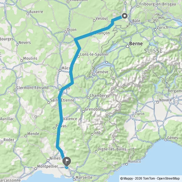 Prendre à droite et rejoindre A36 E54 E60. Continuer sur 180 kilomètres