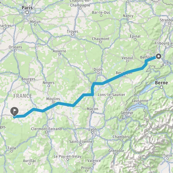 Prendre à droite et rejoindre A36 E54 E60. Continuer sur 222 kilomètres