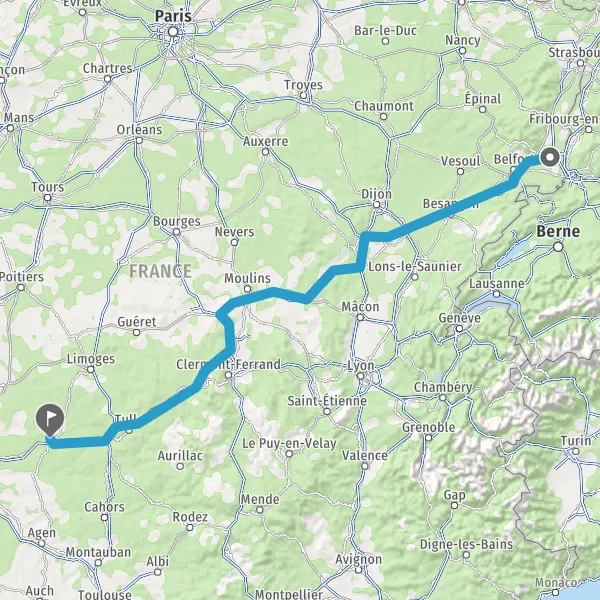 Prendre à droite et rejoindre A36 E54 E60. Continuer sur 222 kilomètres