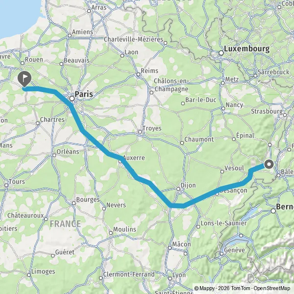 Prendre à droite et rejoindre A36 E54 E60. Continuer sur 222 kilomètres