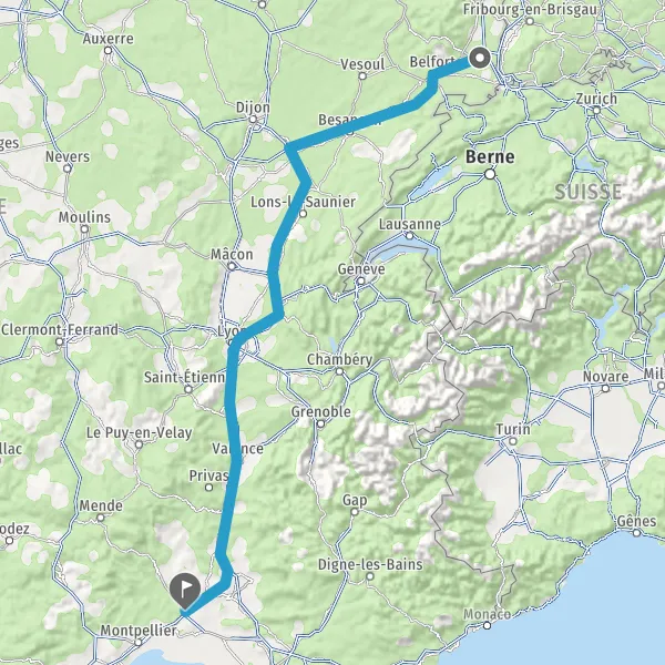 Prendre à droite et rejoindre A36 E54 E60. Continuer sur 180 kilomètres