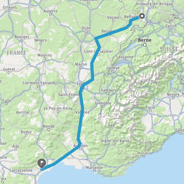 Prendre à droite et rejoindre A36 E54 E60. Continuer sur 180 kilomètres