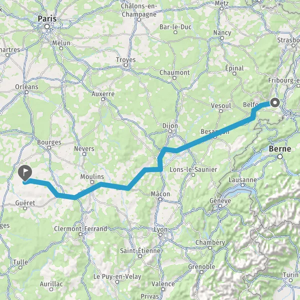 Prendre à droite et rejoindre A36 E54 E60. Continuer sur 222 kilomètres