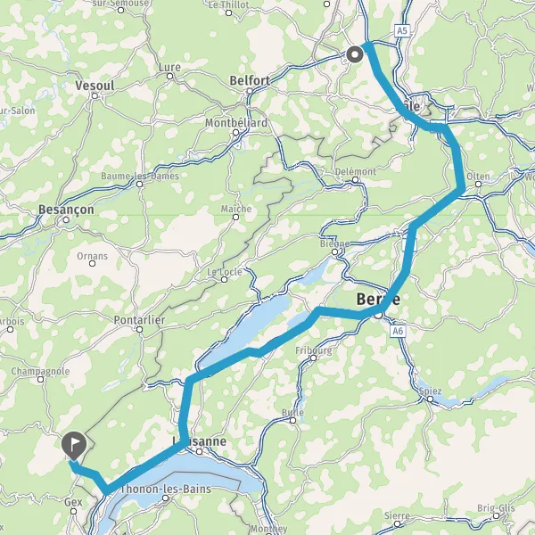 Prendre à droite et rejoindre A36 E54 E60. Continuer sur 129 kilomètres