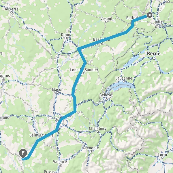 Prendre à droite et rejoindre A36 E54 E60. Continuer sur 180 kilomètres