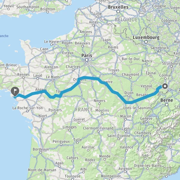 Prendre à droite et rejoindre A36 E54 E60. Continuer sur 222 kilomètres