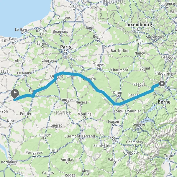 Prendre à droite et rejoindre A36 E54 E60. Continuer sur 222 kilomètres