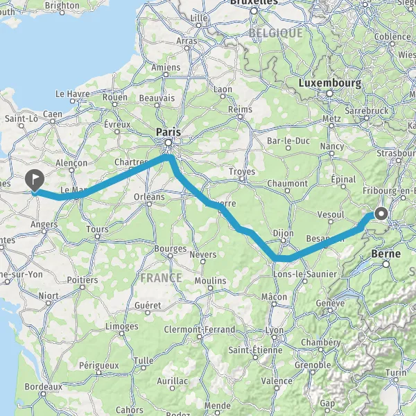 Prendre à droite et rejoindre A36 E54 E60. Continuer sur 222 kilomètres