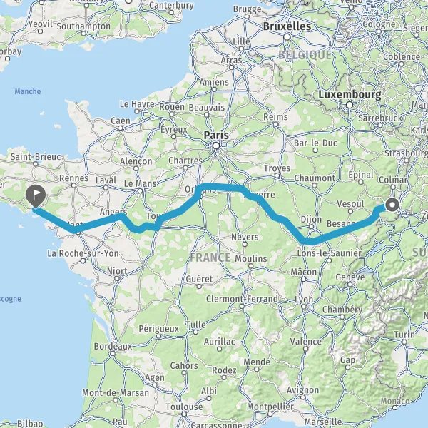 Prendre à droite et rejoindre A36 E54 E60. Continuer sur 222 kilomètres