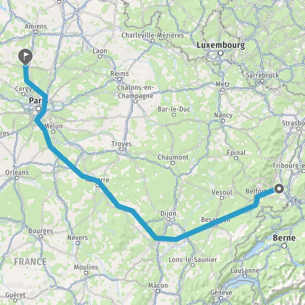 Prendre à droite et rejoindre A36 E54 E60. Continuer sur 222 kilomètres