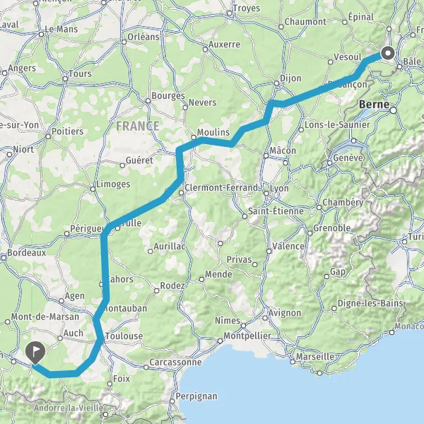 Prendre à droite et rejoindre A36 E54 E60. Continuer sur 222 kilomètres