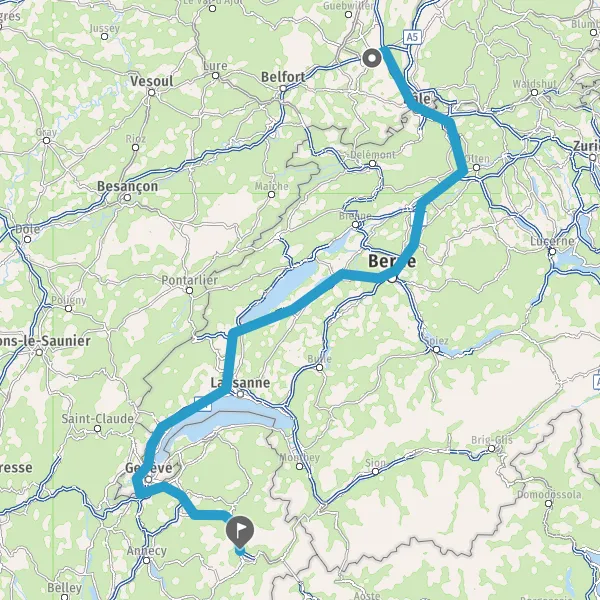 Prendre à droite et rejoindre A35 E25 E60. Continuer sur 27 kilomètres