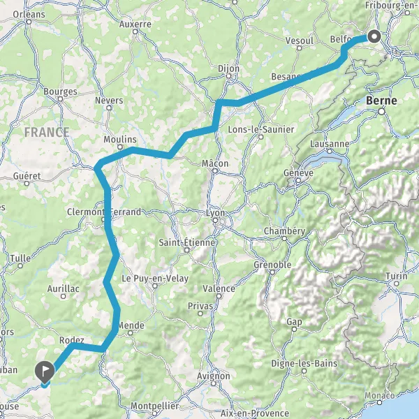 Prendre à droite et rejoindre A36 E54 E60. Continuer sur 222 kilomètres