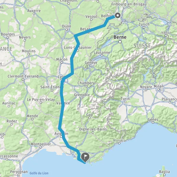 Prendre à droite et rejoindre A36 E54 E60. Continuer sur 180 kilomètres