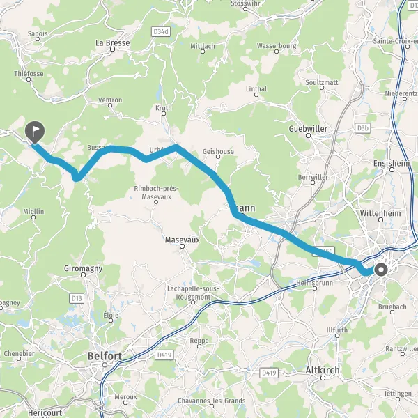 Au rond-point, prendre la 2ème sortie sur E512 D1066 (Route de Bussang) et continuer sur 7,8 kilomètres