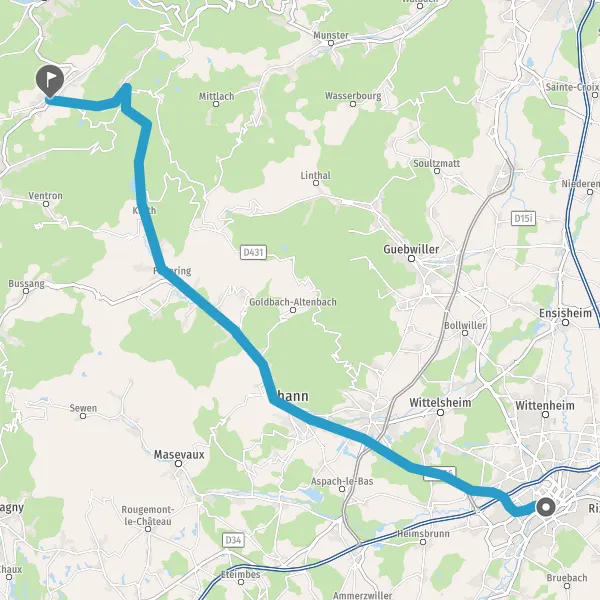 Tourner à gauche sur D34 (Rue du Hohneck) et continuer sur 3,7 kilomètres
