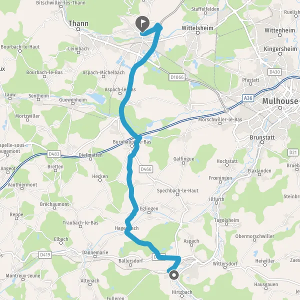 Au rond-point, prendre la 3ème sortie sur D466 (Rue de Thann) et continuer sur 3,1 kilomètres