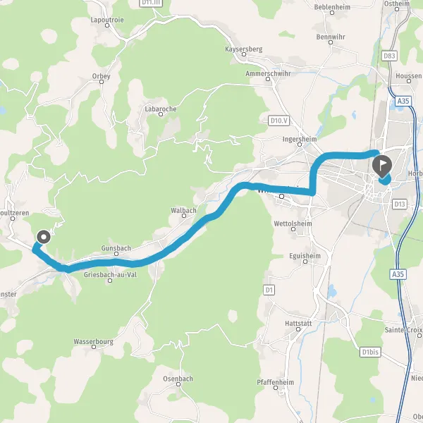 Continuer D10 D417 (Route de Gunsbach) sur 700 mètres