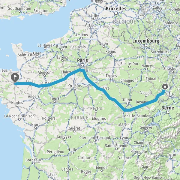 Prendre à droite et rejoindre A36. Continuer sur 208 kilomètres