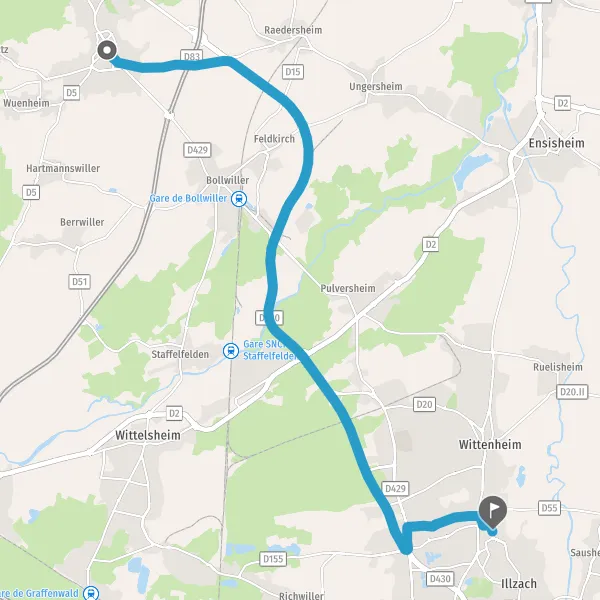 | Distance en voiture | 15,1 km à 17,8 km |