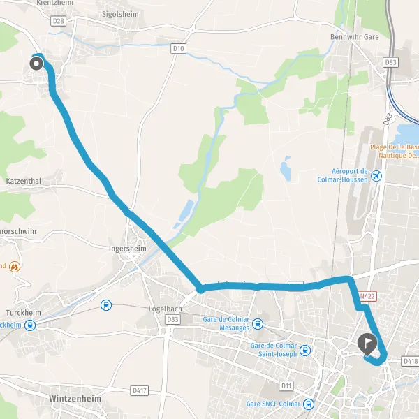 Avec le mode voiture, vous pouvez configurer vos options (type de véhicule, autoroute ou non, péage ou non, distance la plus courte), tout en ayant accès aux infos de circulation grâce à notre service d'info-trafic en temps réel. Ainsi faites des économies sur le coût ou la durée de votre voyage, en trouvant le trajet Ammerschwihr Colmar adapté à vos besoins.
