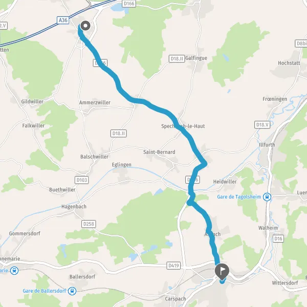 | Distance en voiture | 14,6 km à 16,2 km |