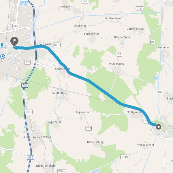 Avec le mode voiture, vous pouvez configurer vos options (type de véhicule, autoroute ou non, péage ou non, distance la plus courte), tout en ayant accès aux infos de circulation grâce à notre service d'info-trafic en temps réel. Ainsi faites des économies sur le coût ou la durée de votre voyage, en trouvant le trajet Neuf-Brisach Colmar adapté à vos besoins.