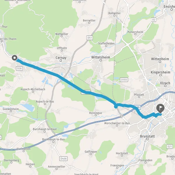 Au rond-point, prendre la 2ème sortie sur D20 (Rue de Thann) et continuer sur 850 mètres