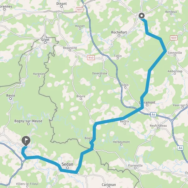 Continuer N89 E46 (Avenue de Bouillon) sur 400 mètres