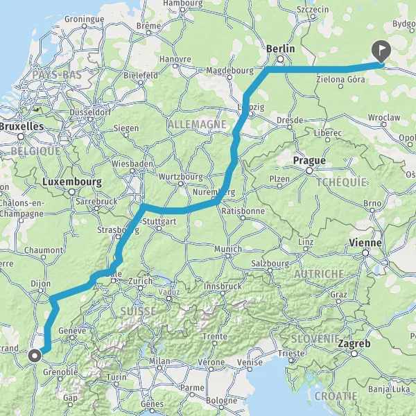 Prendre à droite et rejoindre A36 E60. Continuer sur 196 kilomètres