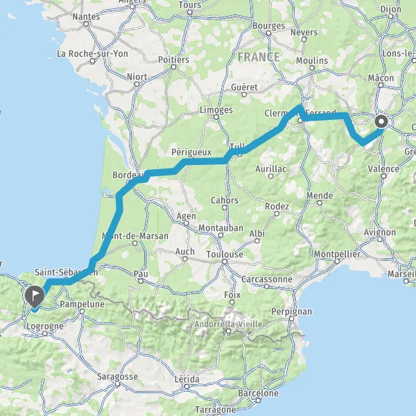Prendre à droite et rejoindre A63. Continuer sur 205 kilomètres