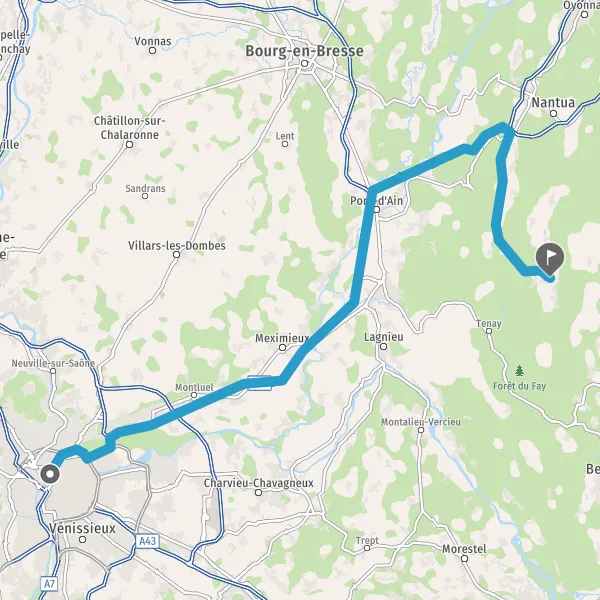 Prendre à droite et rejoindre A42. Continuer sur 4,4 kilomètres
