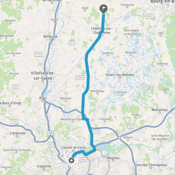 Tourner légèrement à droite sur D1 (Route de Saint-Trivier) et continuer sur 2,7 kilomètres