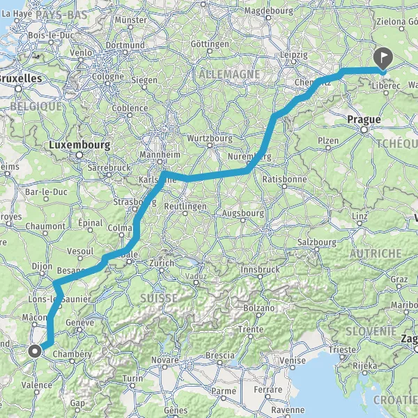 Prendre à droite et rejoindre A36 E60. Continuer sur 125 kilomètres