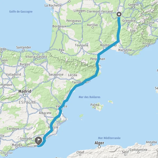 Prendre à droite et rejoindre A9 E15. Continuer sur 86 kilomètres