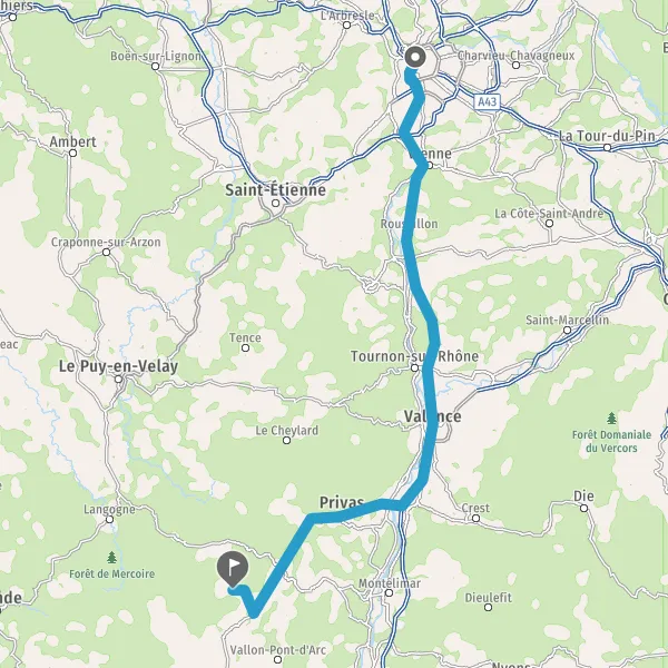 Au rond-point, prendre la 1ère sortie sur N102 (Route d'Aubenas) et continuer sur 8,3 kilomètres