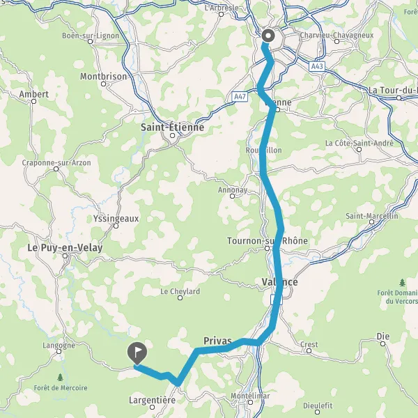 Tourner légèrement à gauche sur N102 (Route du Puy-en-Velay) et continuer sur 5,9 kilomètres
