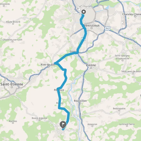 Tourner légèrement à droite sur D28e (Route de Pelussin) et continuer sur 1,1 kilomètre