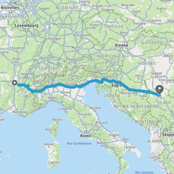Sortir et rejoindre Bulevar Arsenija Čarnojevića. Continuer sur 80 mètres