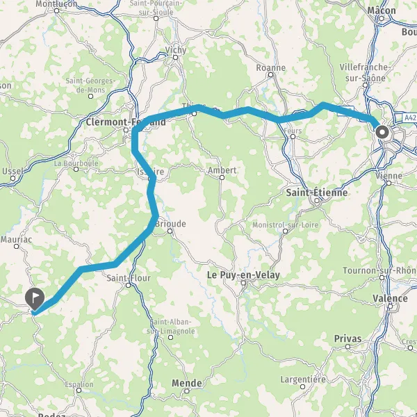 Continuer et rejoindre A89 E70. Continuer sur 77 kilomètres