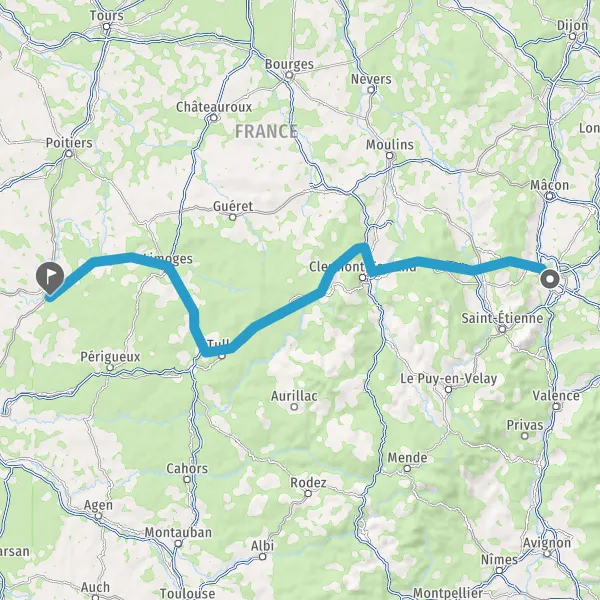 Trajet de Lyon (69000) à Angoulême (16000) en voiture